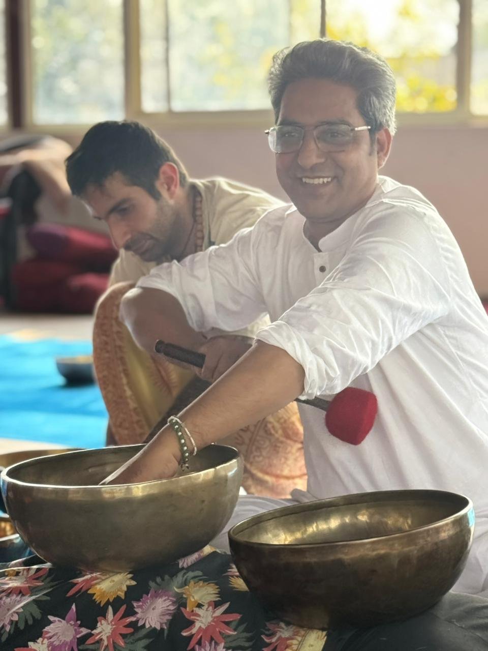 With a master’s degree in Yoga from the Uttaranchal Sanskrit University (Haridwar campus), his exploration naturally deepened into Nada Yoga — the yogic science of sound. Years of practice, performance, and teaching helped shape an understanding of how sound interacts with the body, mind, and chakra system.